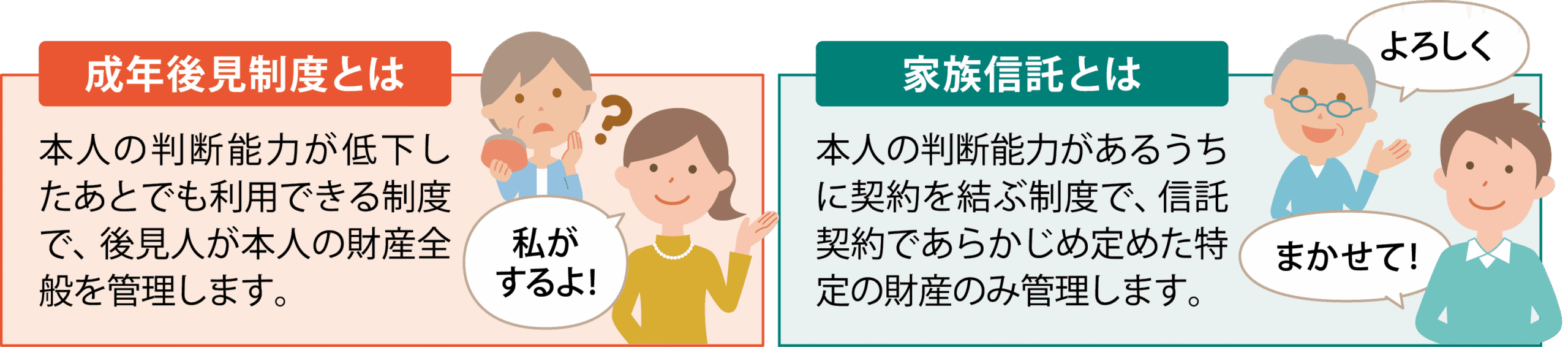 ※ どちらも費用がかかるため、「誰が・いつ・何のためにお金を使えるようにしたいか」を整理し、制度を選ぶことがポイントです。